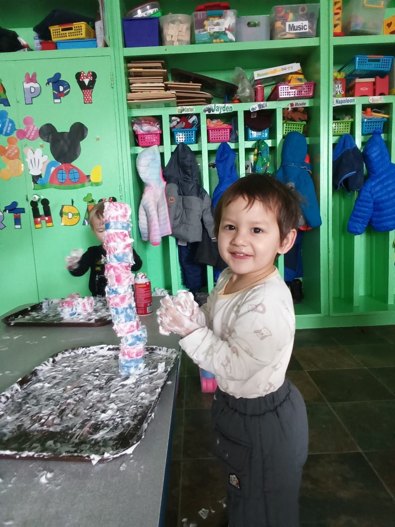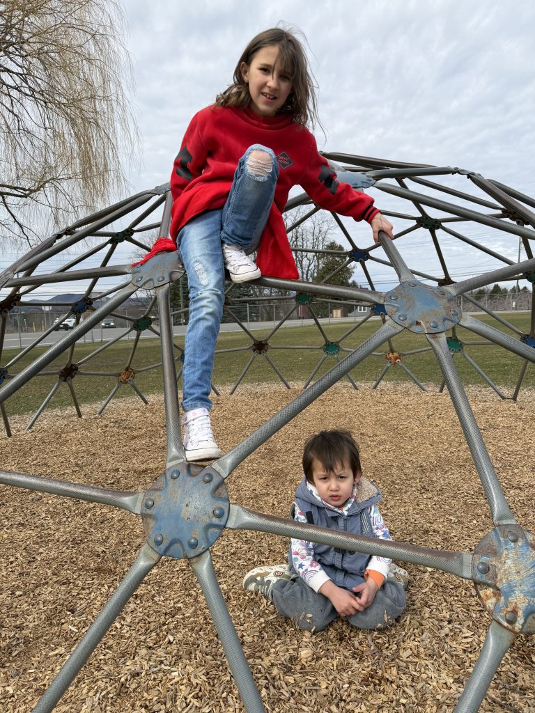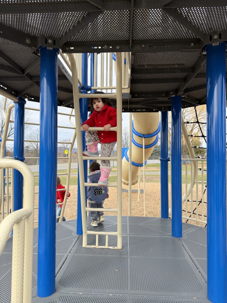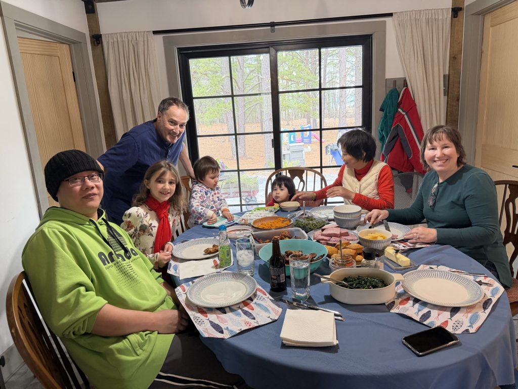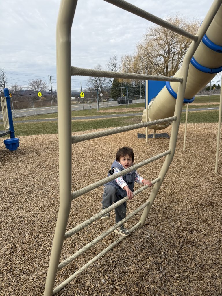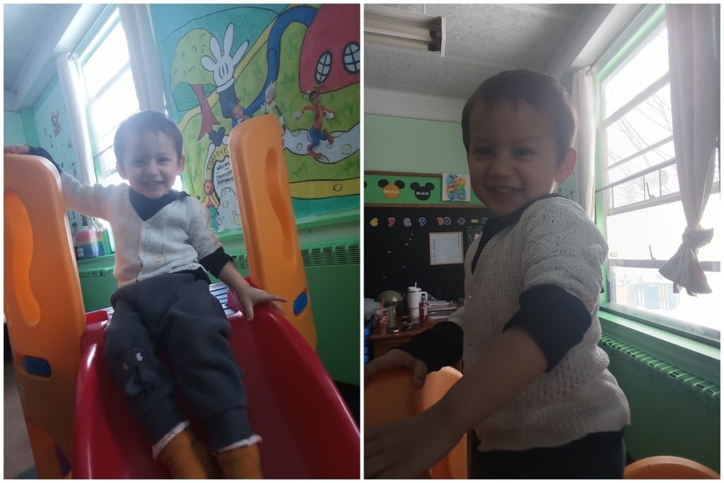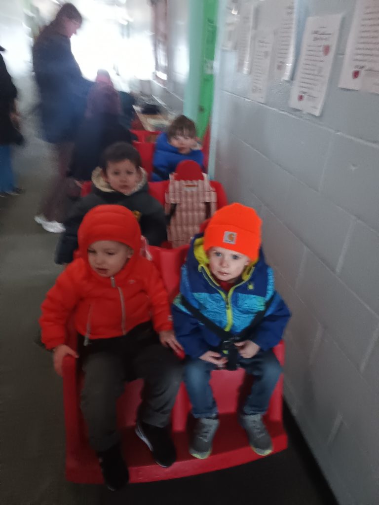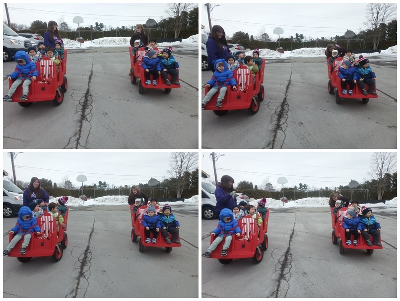 大约下午一点半左右,我们结束了雪道滑行,又带他玩了几趟 toboggan 雪橇。