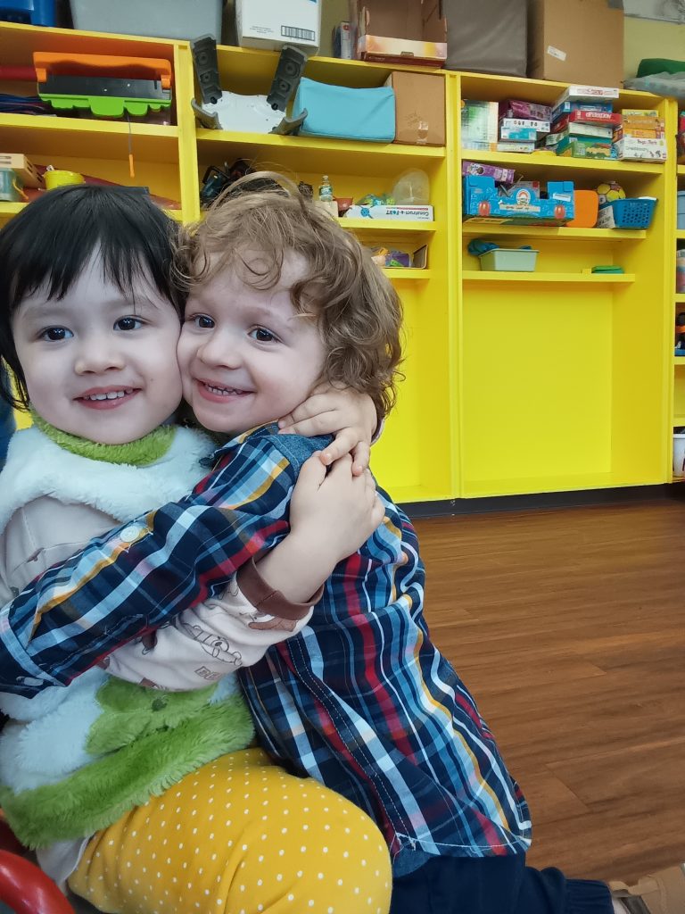 然后回到壮壮那儿放下雪板,再继续抱他前进……